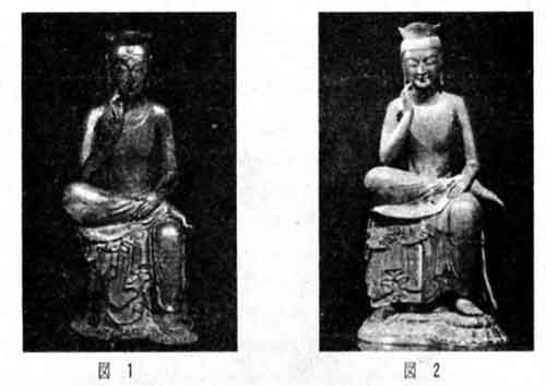 | 第1問 歴史を考える手がかりとしての文化財に関して述べた次の文章A・Bを読み、下の問い(問1〜6) に答えよ。(配点12) A 博物館や古い寺社などに出かけると、大切に保存された貴重な文化財を目にすることができ、歴史の 実際に触れる思いがする。 図1・2を見てみよう。いずれも7世紀こ制作されたと考えられる有名な仏教彫刻である。現在、図1の 像は韓国ソウルの国立中央博物館、図2の像は京都の広隆寺で、それぞれ所蔵・公開されている。両 者がとてもよく似ているのは、(a)当時の東アジアの歴史が関連しあって推移していたからだろう。また図 2の像は、(b)日本の伝統文化や歴史を再評価しようとする動きのなかで、近代に至って真っ先に注目 された。なお二つの像は、両国でそれぞれ国宝に指定されている。 | ||