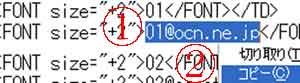 | 「ソース画面」のメールアドレスをドラッグ→「コピー」 |