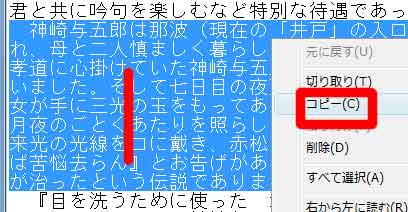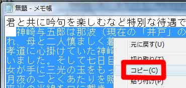 | 写真(4)「メモ帳」の必要な部分をドラッグ→右クリック→「コピー」 |