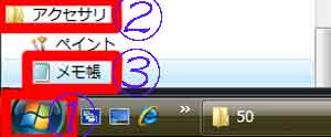 | 写真(1)「メモ帳」を開く |