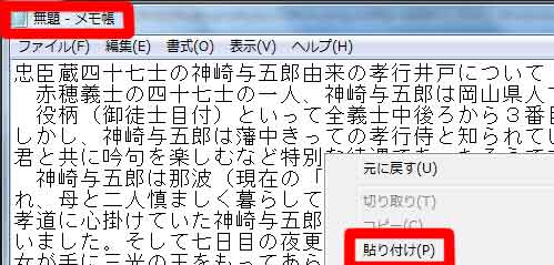 | 写真(3)「メモ帳」を右クリック→「貼り付け」 |