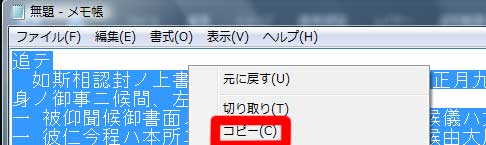 | (5)OCRでメモ帳に貼り付けたテキストデータをコピー |