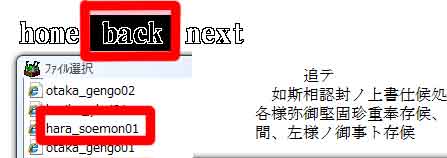 | 現ページ(otaka_gengo01)から前ページ(hara_soemon01)にリンク←クリック | |||||||||||||||||||||||||||