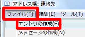 | (4)「ファイル」をクリック→「エントリの作成」をクリック |