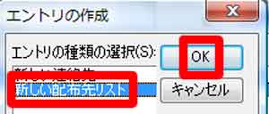 | (5)「新しい配布先リスト」をクリック→「OK」をクリック |