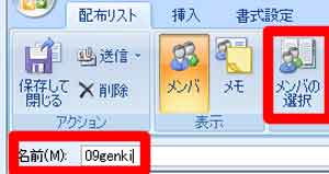 | (6)「名前」にグループ名を入力→「メンバの選択」をクリック |