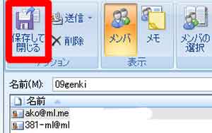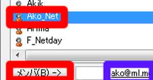 | (7)メンバーのメールアドレスをクリック→「メンバ(B)」をクリック→アドレスの表示 |