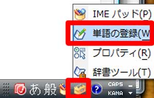 | 写真(4)は、単語登録です。 (1)パソコンの右下の「ツール」→「単語の登録」 |