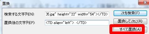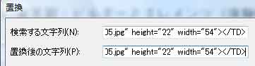 | 写真(6)は、 (1)「検索する文字列」に写真(4)でコピーした (2)「置換後の文字列」に写真(4)でコピーした |