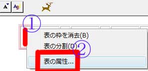 (1)@「セル」内を右クリック→A「表の属性」をクリックします。 |