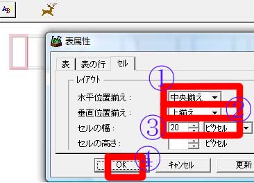 (1)@「セル」の幅を文字幅の20ピクセルに設定する。