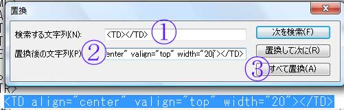 (1)@「検索する文字列」(ここでは<TD></TD>)