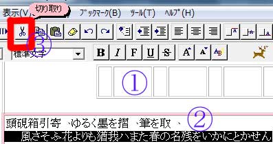 (2)A文字列をドラッグ→B「切り取り」→「レイアウト原簿」に貼り付けます。 |