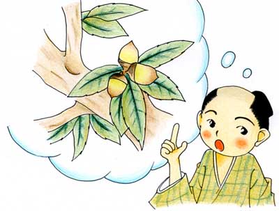「よそに池がありました。池のはたに岩がありました。岩の横に樫の木が一本はえて、大(おお)けになって、仰山(ぎょうさん)に実がなりました。