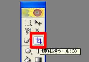 | 写真(1)は、「切り抜きツール」を選択します。 |