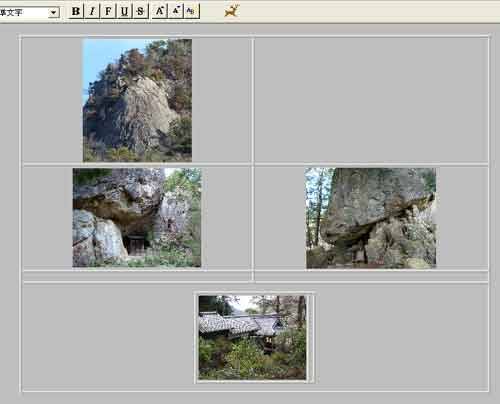 | 写真(1)は、ビルダー上のレイアウトです。 (1)ディスプレー画面に、全ての写真が収まるよう、小さくして、配置します。 (2)写真の配置を、ストーリー性を持たせて、変更します。 | ||||||||||||||||||