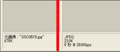 | 写真(5)は、「Web用に保存」の容量です。 (1)左が元の重さ(678K)、右が「Web用に保存」した場合の重さ(23.9K)です。 (2)約28倍の違いです。全ての人に見てもらうには、画像は劣化しますが、軽くする方を選びます。 | ||||||||||||||||||