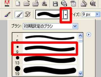 | ブラシの種類・太さを選択 |