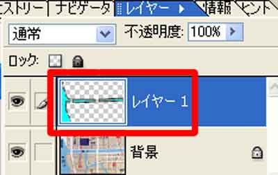 | 写真(4)は、「レイヤー1」に「塗りつぶし」が反映されています。 |