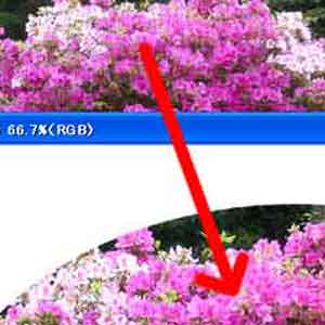 | 写真(4)は、ドラッグした後、「選択範囲」→「境界をぼかす」を選択しています。 |