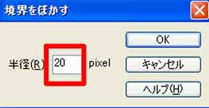 | 写真(5)は、半径を「20」にしています。 |