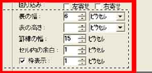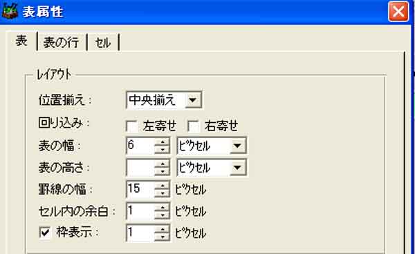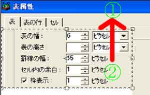 | 写真(2)は、「表属性」のオリジナル画面です。 (1)不要な部分が多く、写真の容量が重くなっています。 |