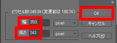 | (3)「幅」(350)→「高さ」(自動設定)→「Ok」 |