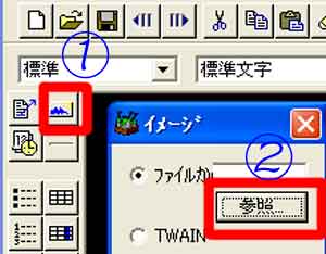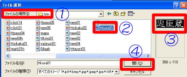 | 写真(3)は、マイコンピュータの「btn」フォルダからロゴタイトルを選択しています。 |