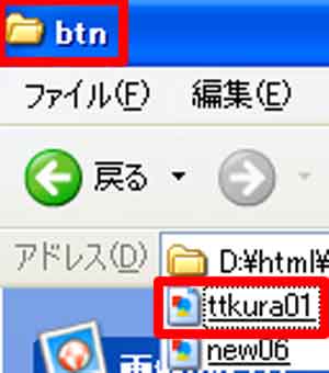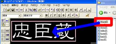 写真(4)は、マイコンピュータの「btn」フォルダからロゴタイトルを選択し、ビルダー上にドラッグしています。