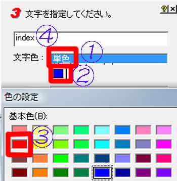 | (4)「単色」→■→赤色を選択→「index」と入力 | |||||