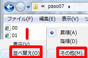 | 写真(3)は、列幅の変更画面です。 (1)マイコン内を右クリック→「並べ替え」→「その他」 |