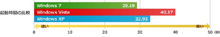 | MS(マイクロソフト)がまずアピールするのが、セブンの作動スピードの速さだ。起動時間は前作のビスタ の40秒から29秒に短縮。インターネットの閲覧ソフトが立ち上がるまでの時間もビスタのほぼ半分だ。 これはビスタが遅いのであって、XPとはほとんど変わりません。 | ||||||||||