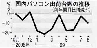 | 不況で販売の鈍化に悩むパソコンメーカーは、セブンの登場を販売てこ入れの材料にしたい考えだ。PC低価格化で方針転換をはかる各社はこぞって対応商品を投入。ソニー、富士通は一部の機種でタッチパネル対応機種を22日に発売するぼか、NECも投入する。ソニーのVAIO事業本部の赤羽良介副本部長は「パソコン市場全体の盛り上がりを期待している」と話す。 MSはこれまで、新作OSを出すたびに機能を向上させてきた。それに伴い、ユーザーはパソコンの高度化を迫られ、買い替え需要を堀起こすことになった。セブンはパソコンのCPUやメモリーの大容量化をしなくても、スムーズに使えるという(2009年10月16日付け朝日新聞)。 | ||||||||||