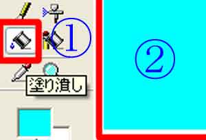 | 写真(3)は、「塗り潰し」画面です。 (1)@「塗り潰し」→Aの上をクリック |