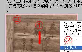 | 写真(6)は、「画像を貼り付け」画面です。 (1)(A画面)での操作です。 (2)@写真(3)で作成したビルダーのレイアウトの画像を貼り付ける場所を右クリック→A「貼り付け」 (3)B実行画面 |