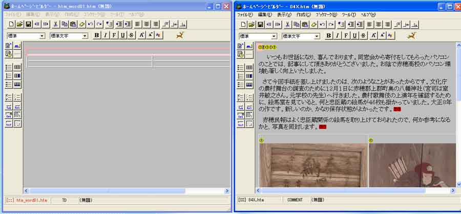 | 写真(2)は、「Web化したワード文書をビルダーに取り込んだ」画面です。 (2)Web化したワード文書をビルダーに取り込みます(B画面)(001.htm)。 |