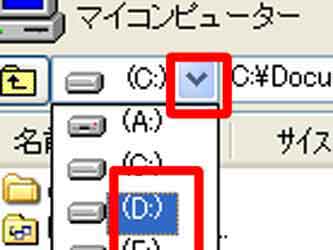 | 「マイコンピュータ側のデータフォルダをクリック」画面 |
