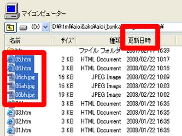 @「更新日時」をクリック→更新データを上位にする(この場合、2008年2月22日が更新データ)