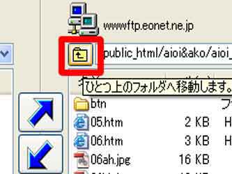 (1)サーバー側の「 」(ひとつ上のフォルダへ移動します)をダブルクリック |