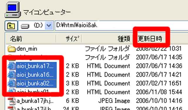 @「更新日時」をクリック→更新データを上位にする(この場合、2007年2・6月17日が更新データ)