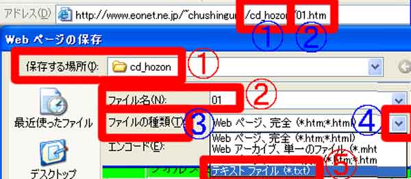 (1)@のフォルダ(cd_hozon)を参照して、@のフォルダ(cd_hozon)を確認する。