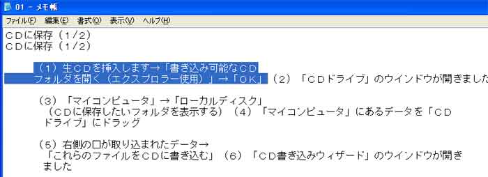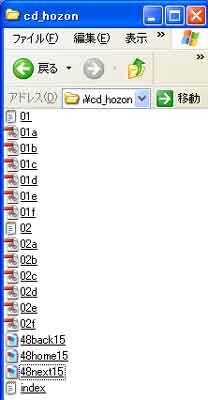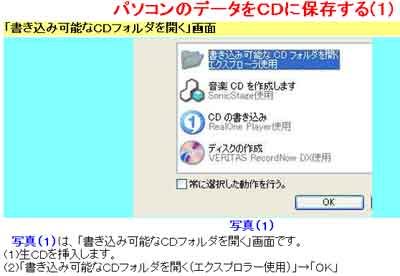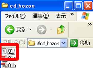 (1)「マイコンピュータ」の「cd_hozon」フォルダに保存したデータ一覧です。 |