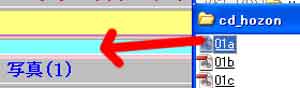 (1)「マイコンピュータ」の「cd_hozon」フォルダに保存したデータ一覧から最初の画像をビルダー上にドラッグする。 |