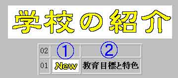 | 写真(8)は、「1ページ目と小目次の完成(8)」画面です。 (1)ビルダー上の「開く」 (2)「hosin」フォルダ内のhosin_ndxを選択 (3)表の作成(3列×2行)→「New」ボタンの挿入→文字入力 (4)@とAの空白部分を表示するには、日本語入力の「全角」にして、「スペースキー」を押す。 (5)新しい番号が常に上に来るように、見る人へ配慮するのが、ホームページの基礎基本です。 |