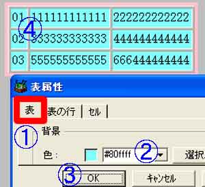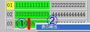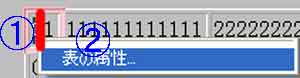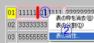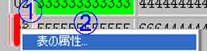 | (1)@セル内を右クリック→A「表の属性」 |