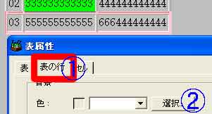 | (1)@「セルの行」→A色の「選択」 |