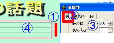 (1)@表のやや離れた右側を右クリック→A「表」→B「表の幅」は「700」ピクセル→C実行結果 |