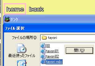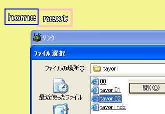 (2)「home」をクリック→「home」が見える位置に、「リンク」・「ファイル選択」ウィンドウを移動