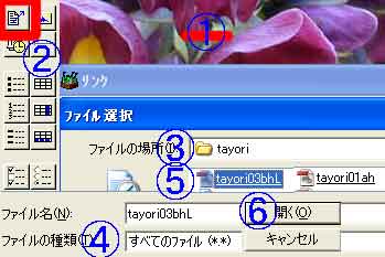 (2)A画像「tayori03bh」が見れるように、「リンク」・「ファイル選択」ウインドウを移動