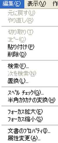 | メニュー画面(1)━ファイル・編集・検索・置換・文書のプロパティ |
